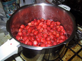 材料 いちご(とちおとめ)1Kg 砂糖 350g クエン酸 小さじ1杯 @ いちごを洗って、へたを取り、ボールに入れる。