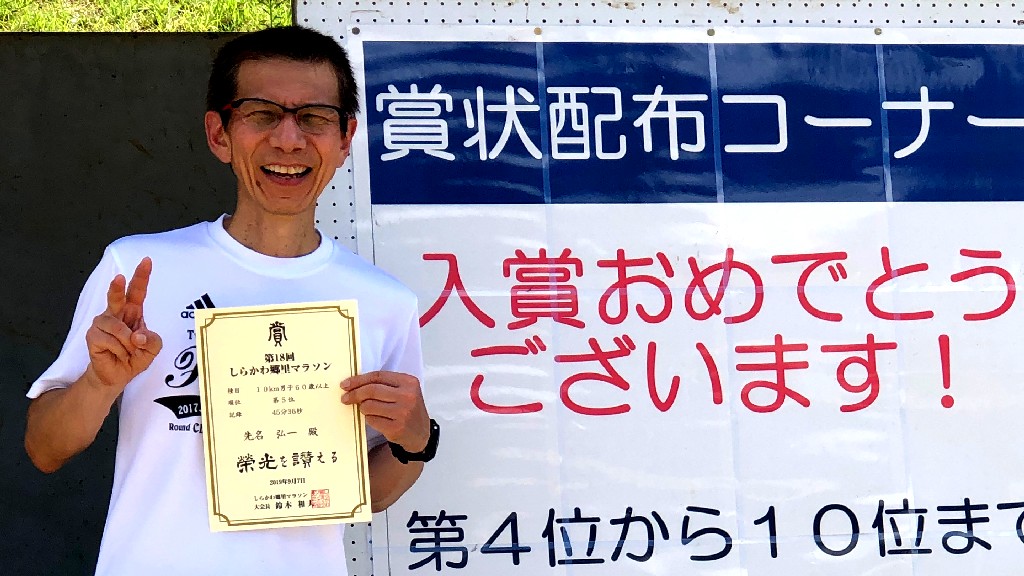 福島県なのでちょっと遠いかったけど、暑い中なんとか60歳以上5位入賞と走りきりました。