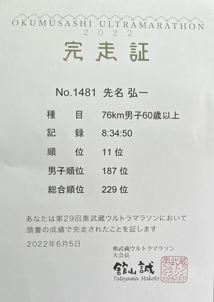 タイムの方は、年齢とともに走力が落ちているのを感じるのですが