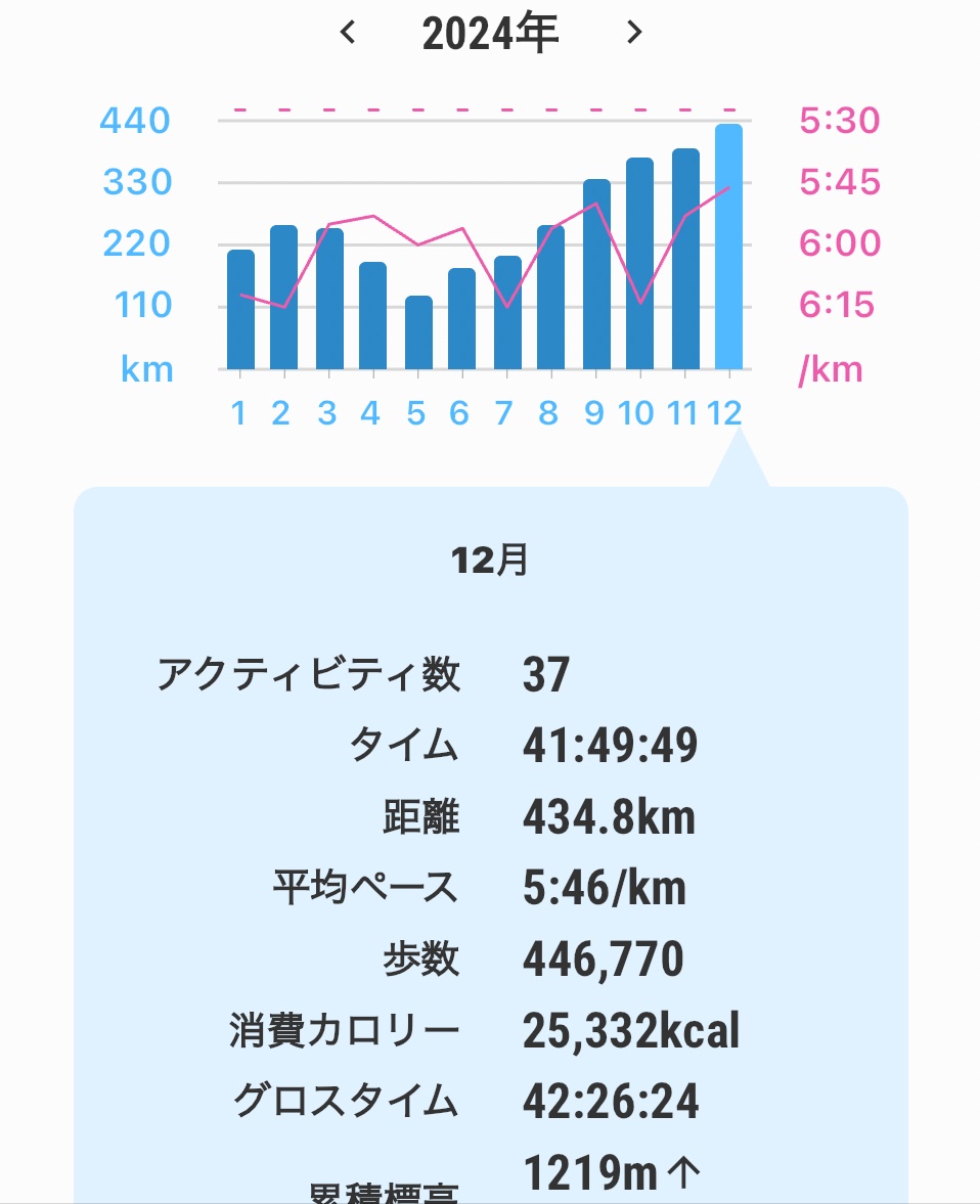 12月31日現在まだ継続中、12月は400km以上走る事が出来ました。
